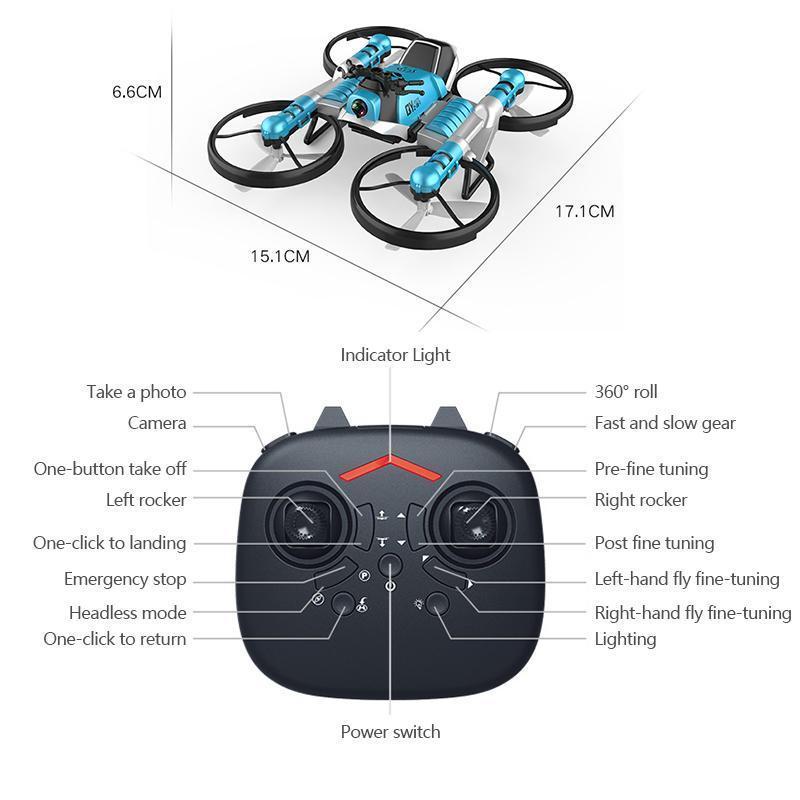 - H6 features the foldable arms and you can change it from RC drone to motorcycle.
