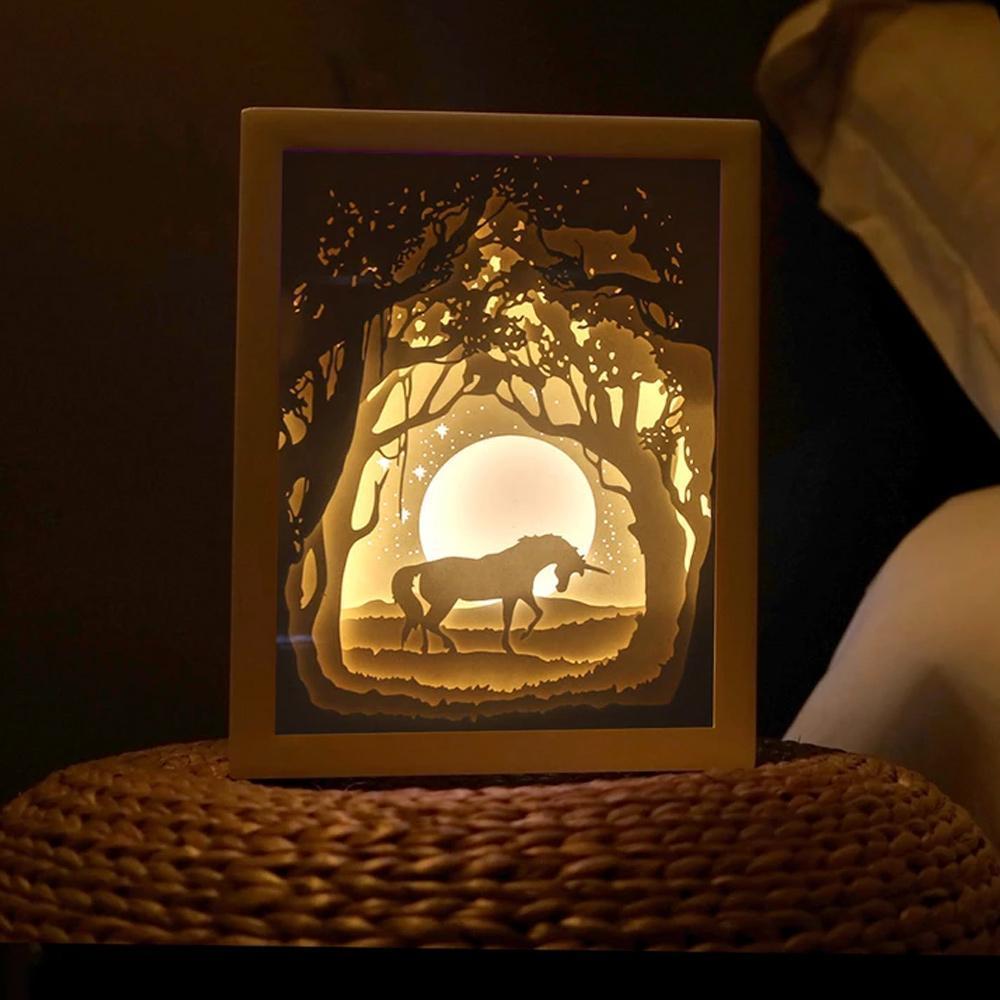 - 1 X 3D Light and Shadow Night Lamp Paper Carving Art