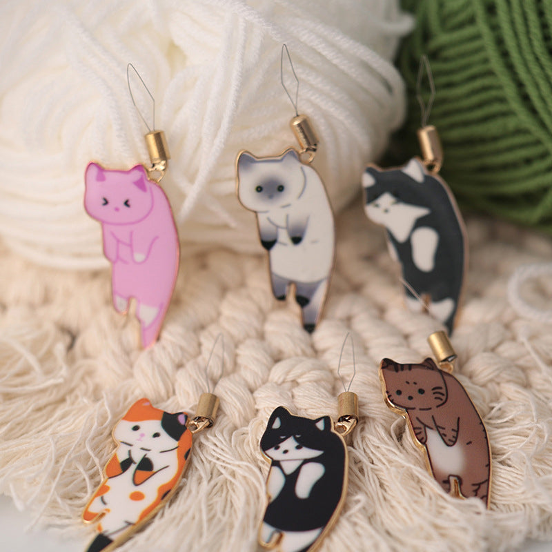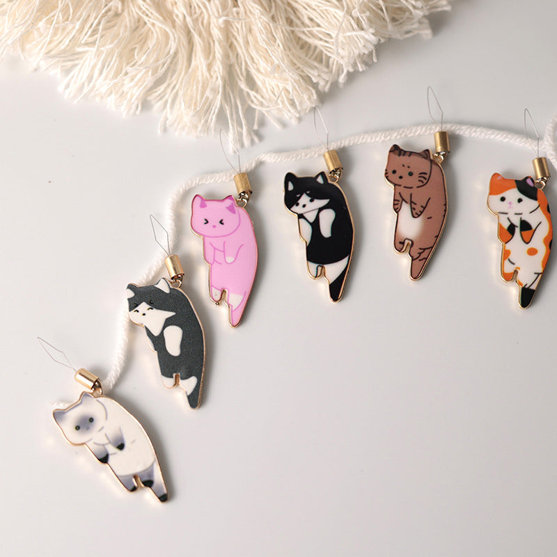 - ⭐Choices include a brown cat, a calico cat, a black and white cat, a grey cat, a white cat with Siamese Markings, and a pink cat in an adorable hanging position.